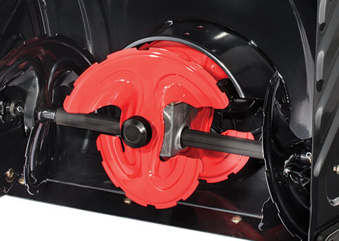 Three-stage technology features an accelerator that spins 10 times faster than the augers to break down and quickly clear heavy, wet snow..